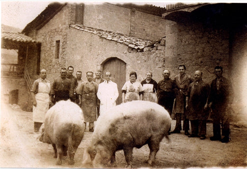 Els nostres inicis es situen en un magatzem dequeviures on, a part de proveir aliments, aviat vam començar a elaborarproductes derivats del porc.
