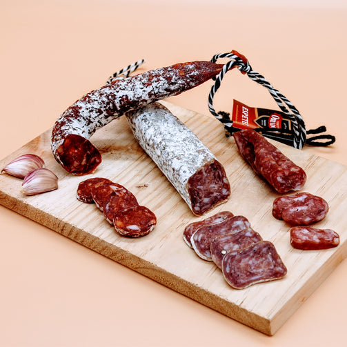 Una peça de xoriço picant, una peça de llonganissa picant i una peça d'espetec.
