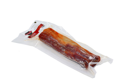 Llom de porc, sal, pebre vermell, sucre, dextrosa, espècies, antioxidant (E-316) i conservant (E-252).