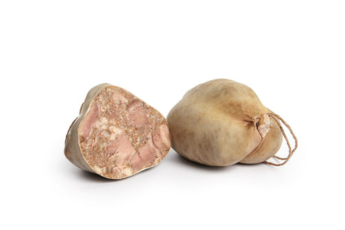 Cabeza y lengua de cerdo, sal, pimienta y especias aromáticas.