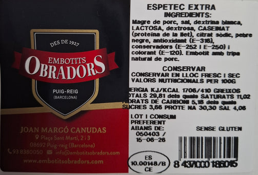 Embutido con tripa natural de cerdo.